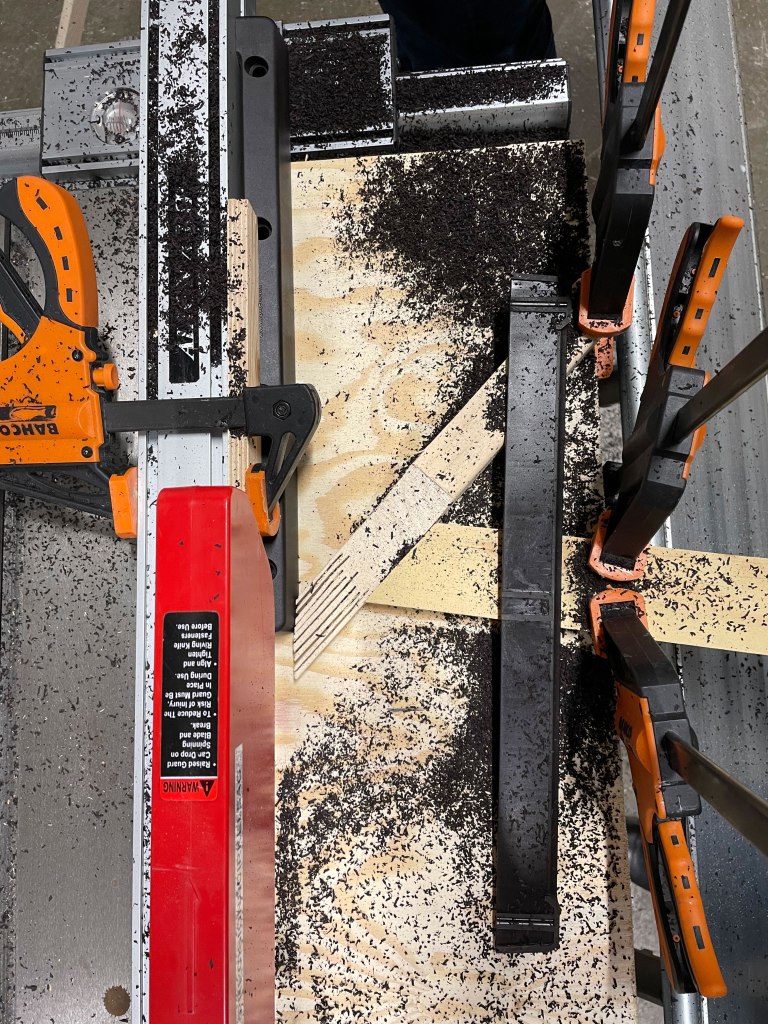After being separated from the frame, these pieces were sanded down so as not to have rough surfaces from the framework structure used to provide the frame with stability and strength. After getting a finer surface, these samples were then surface and contour milled using the smaller CNC mill, available in the wood workshop using molds/frames which had been created prior to consistently getting the same shape. These CNC frames were created using CAD (Computer Aided Design) followed by CAM (Computer Aided Manufacturing) software. Similarly the tensile test pieces contour was defined as to be within this frame and the CAM software programmed to work within the frame. After having the tensile tests surface and contour milled, the edges were sanded to be as smooth as possible and prevent loose material from falling off as the weight of some of the test pieces would be needed for the conditioning process.