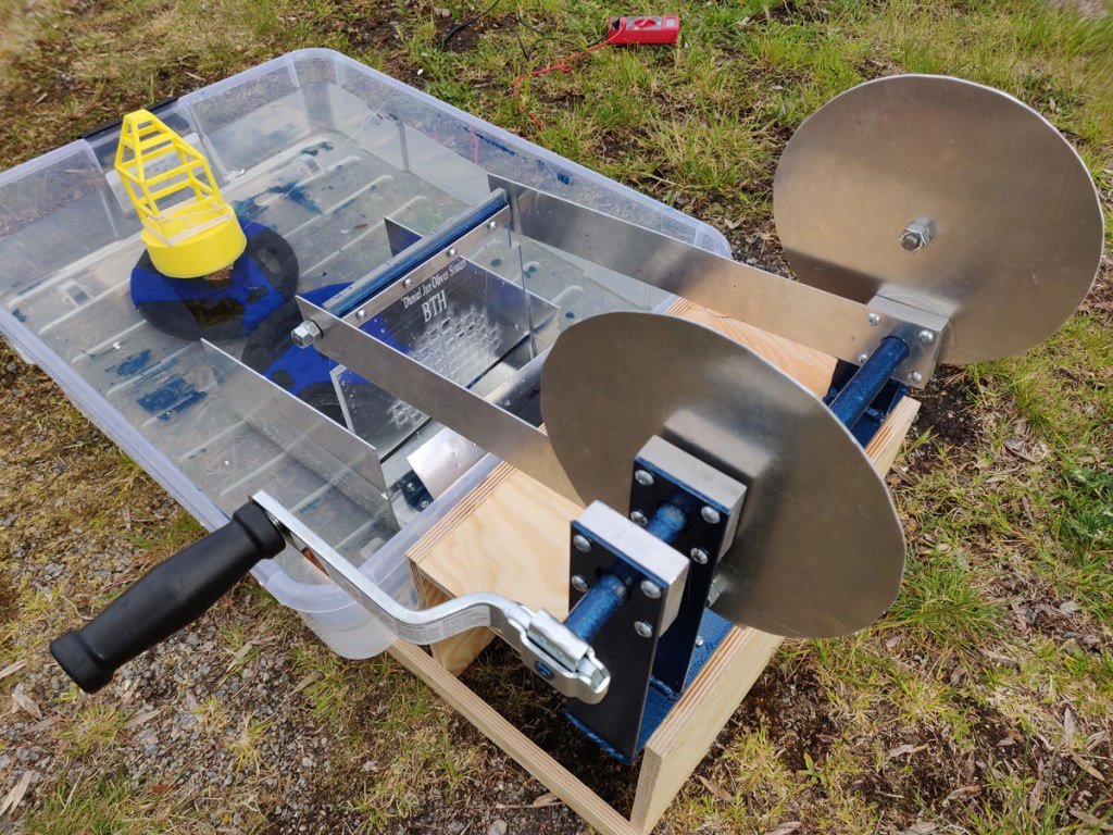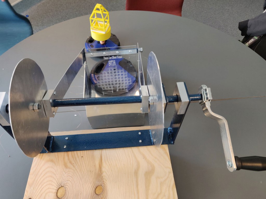 For the visitors of waterland at Kreativum we offers a product that provides an interactive way to learn about renewable energy. We have assembled a wavegenerator that makes waves by turning the lever thus making the plexiglas push water making waves and a wavepowerplant that harness the waves energy by having a magnet moving up and down through a coppercoil creating electricity.