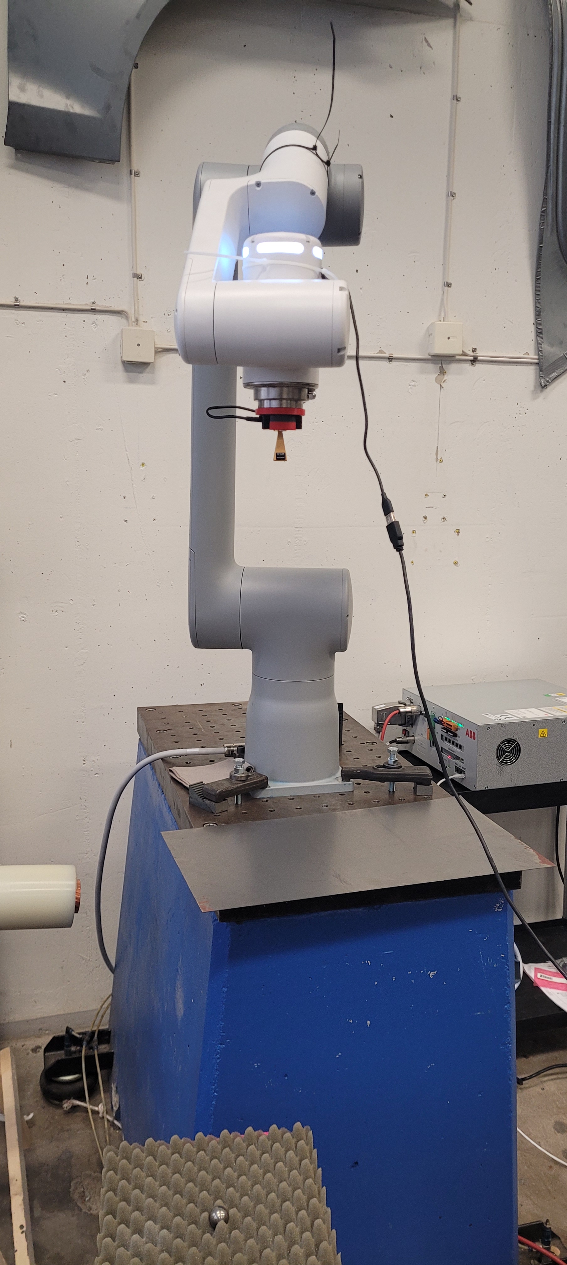High-frequency radar imaging using Synthetic Aperture Radar (SAR) technology has significant potential for non-destructive testing and quality control in industrial applications, such as inspecting High Voltage Direct Current (HVDC) cables during manufacturing. This thesis develops and verifies a calibration procedure designed to accurately determine the Phase Centre (PC) of an FMCW radar antenna mounted on an industrial robotic arm, specifically the ABB GoFa CRB 15000.