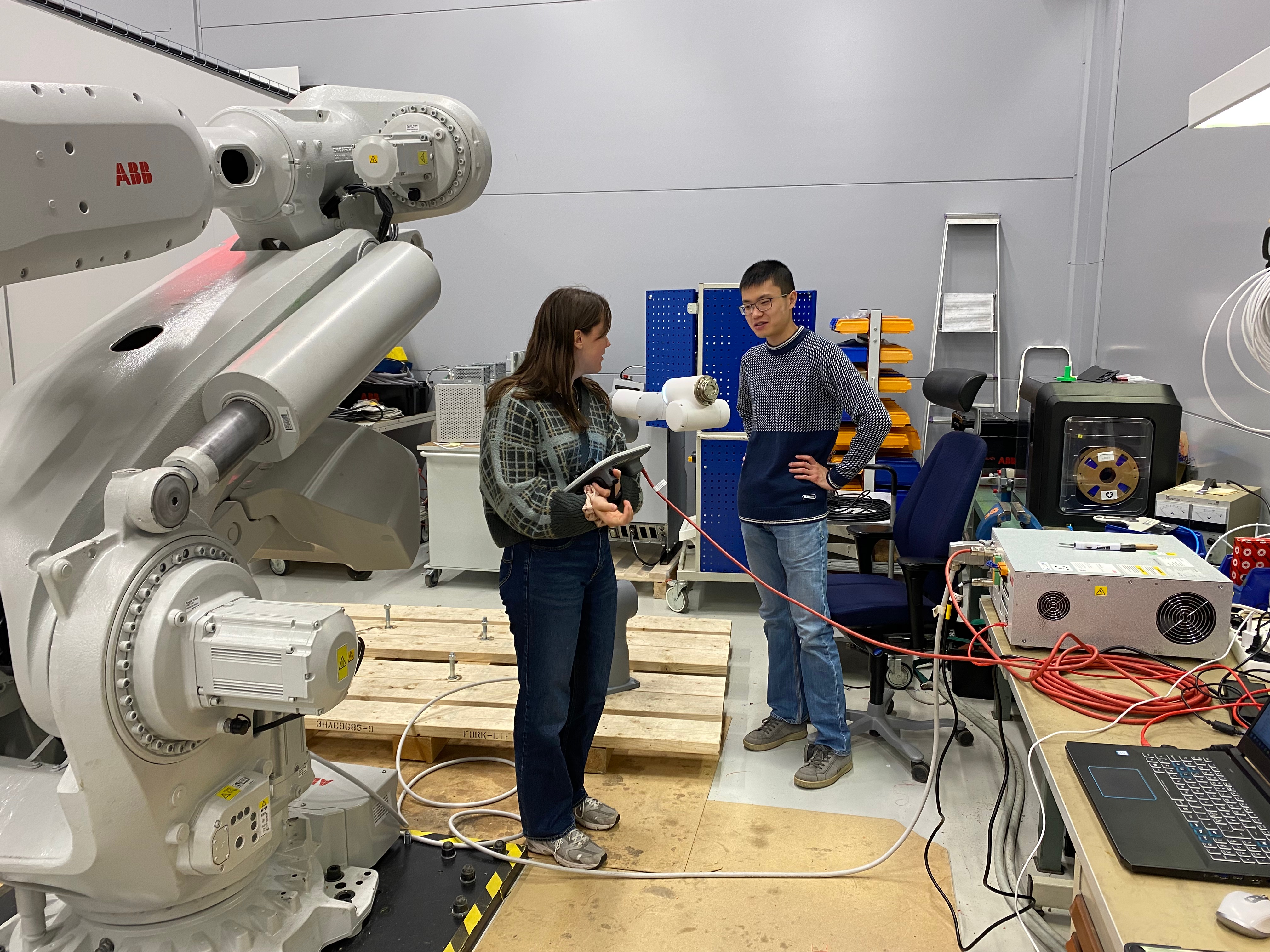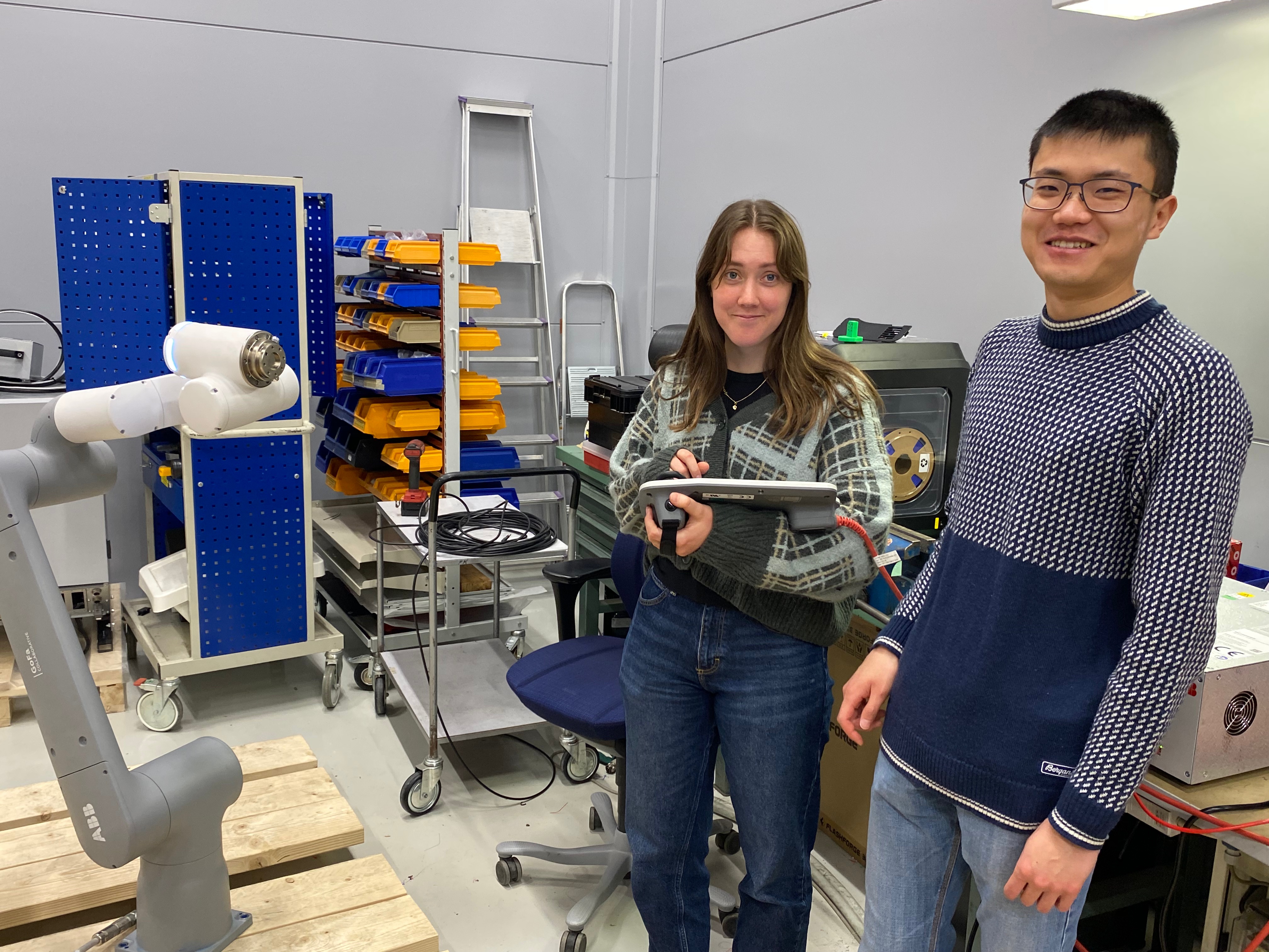Two calibration methods were developed and evaluated, an analytic approach and an empirical approach. The analytic method utilises geometric and trigonometric calculations based on distance measurements from rotations and alignments with known reference points. Simulations validated the theoretical accuracy, but experimental results demonstrated limitations due to measurement resolution constraints. Consequently, an empirical calibration method was developed, relying on comparative positional measurements by placing the radar in multiple known orientations and recording the corresponding distance readings. By analysing variations in these measurements, the relative offset of the radar’s phase centre from the robot’s reference point could be estimated. Experimental results indicated that this empirical method provided improved positional accuracy compared to the analytical method, identifying the PC position with a standard deviation of approximately 0.10 mm while similar approaches with external position measurement units and multiple robots achieved an accuracy of 0.02 mm.
