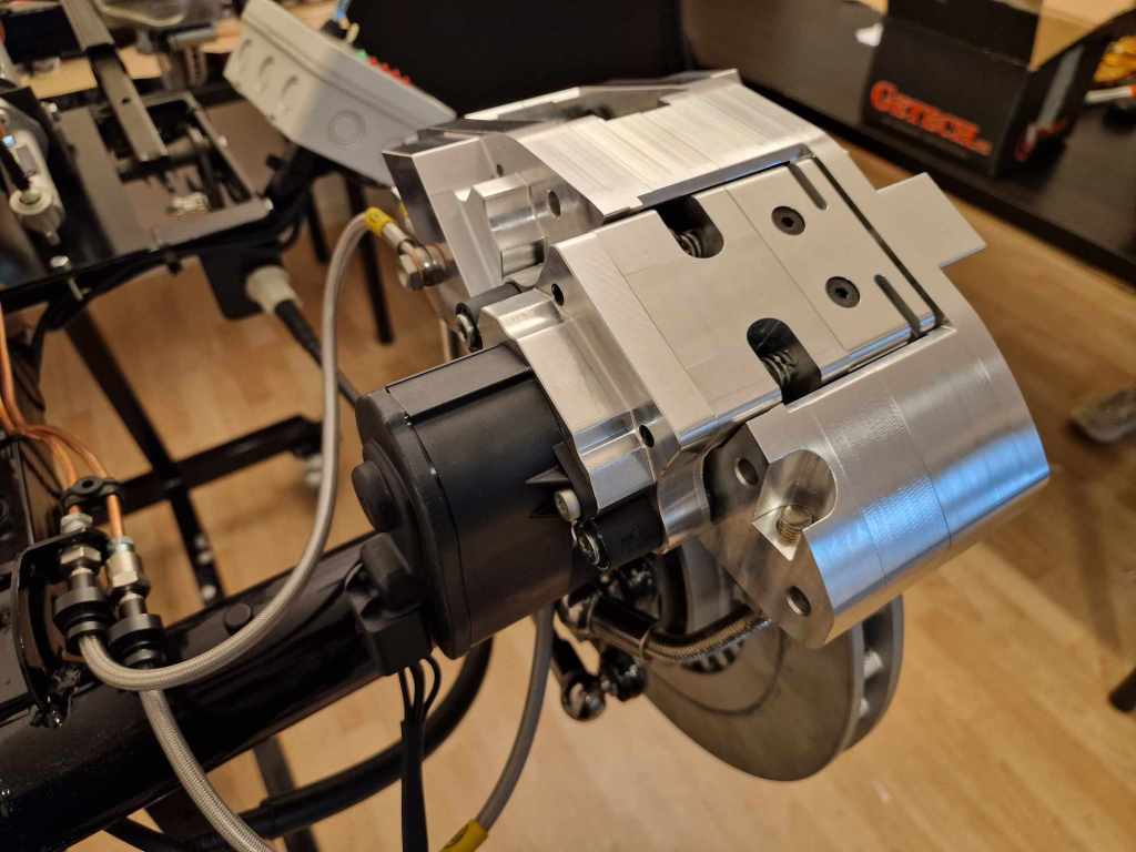 Once the concept, modeling, and strength checks were completed, manufacturing began. Detailed CAM preparations with clearly reviewed tool selections and tool paths were created, along with favorable fixtures to facilitate clamping possibilities. All of this was to ensure a manufacturing process that delivers a quality result from a three-axis CNC milling machine. When the brake caliper was fully manufactured, it was assembled with standard components. The caliper was then installed on a demonstrator where its functions could be visualized and demonstrated. The result was a rear multi-piston brake caliper with three braking functions in a single compact module. The brake caliper was made from an aluminum alloy and consisted of a total of 53 components.